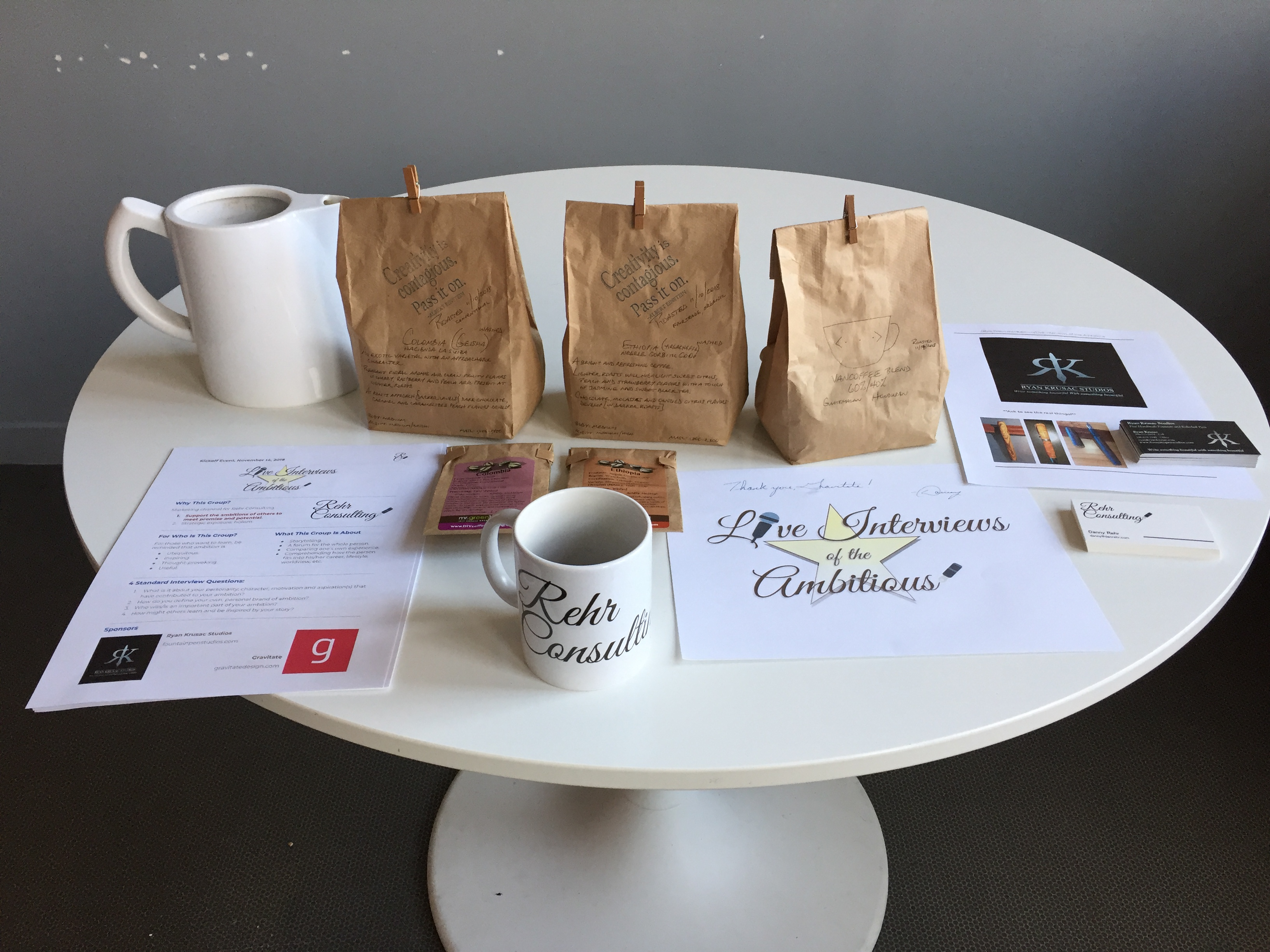 I established Coffee Talk as an industry night concept for facilitated discussion. The topics would be strategy, the market and collaboration. These free, private events for Vancouver, WA-area coffee café owners gradually took on the ‘Live Interviews of the Ambitious’ banner (below).