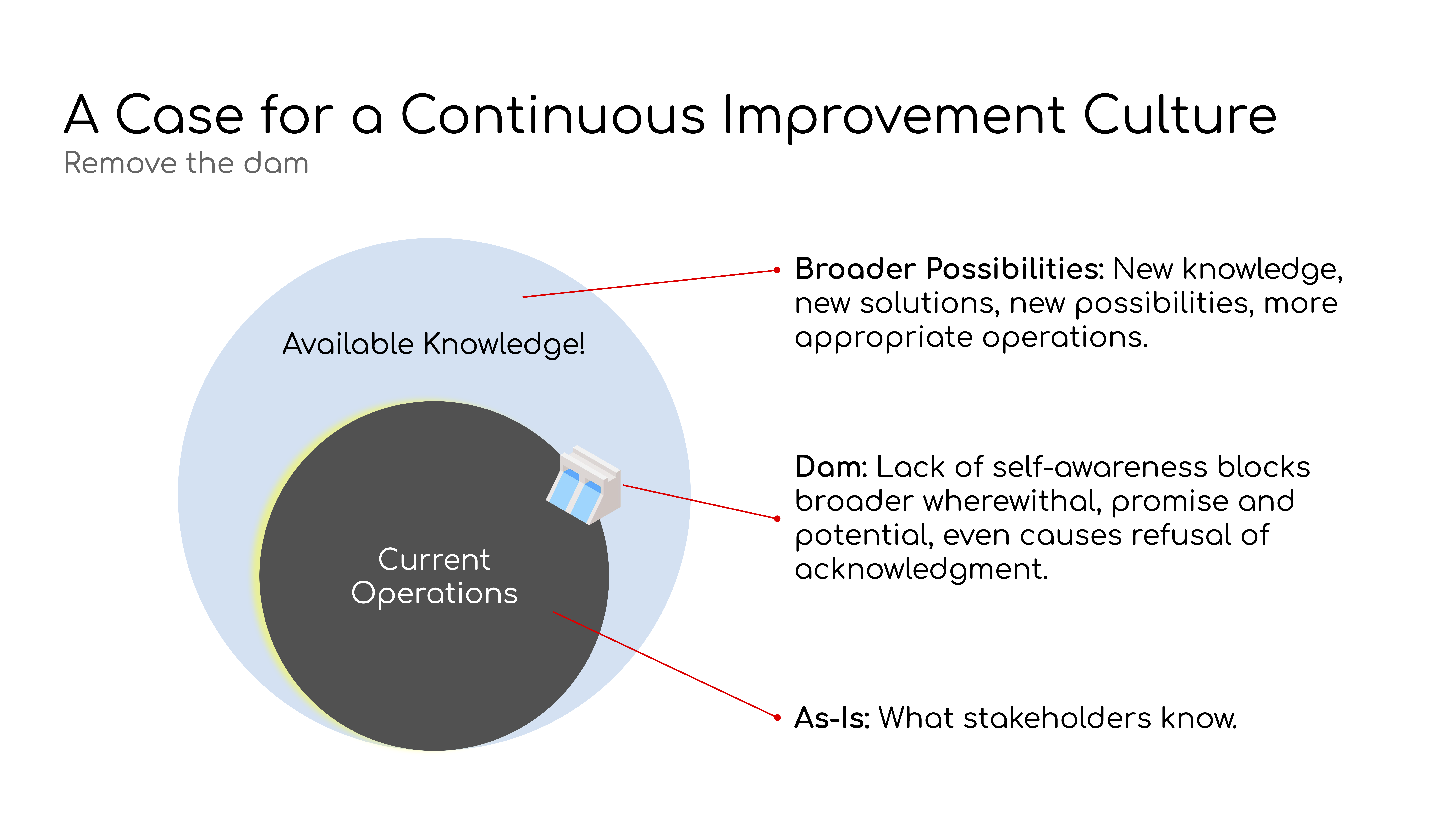 Urging continued learning, i.e. not accepting the status quo, is essential to making progress, leading others and managing inevitable change.