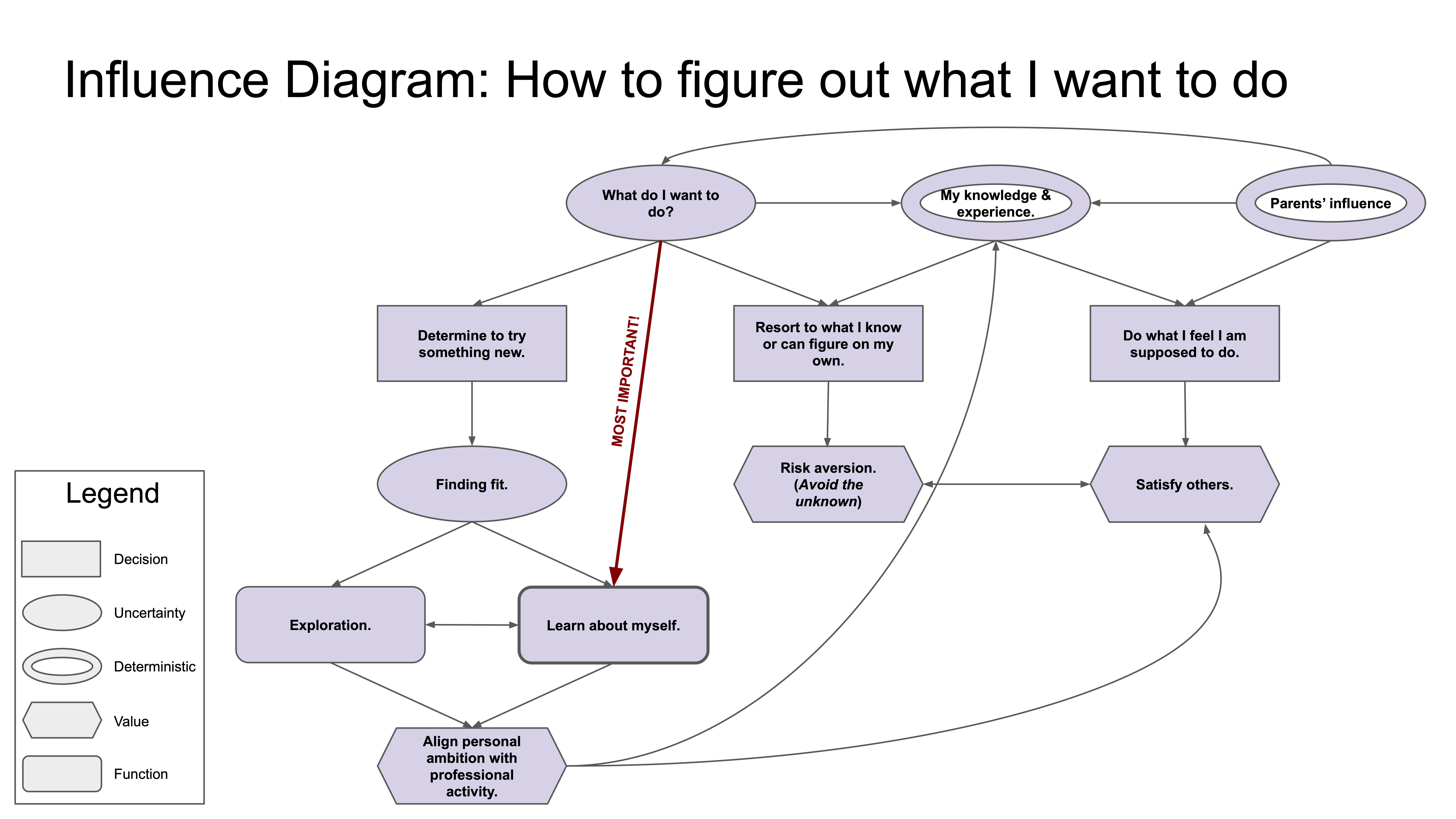 I built this for a young, ambitious coworker. She has great potential. Unfortunately, she feels stuck. Learning about herself will be key to making bold decisions to further her career.