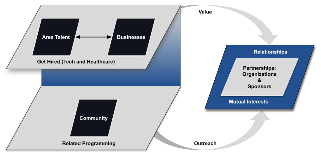 Get Hired (Tech and Healthcare) educates job seekers to get hired by bringing community to businesses, and businesses to the community.