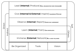 Leadership has both direct and indirect activities that are self-guided and led by others, respectively. These activities may be developed by the practitioner both internally in the organization and externally, say, in the community. All the while, 3 pragmatic fundamentals should be incorporated into everything the leader does.