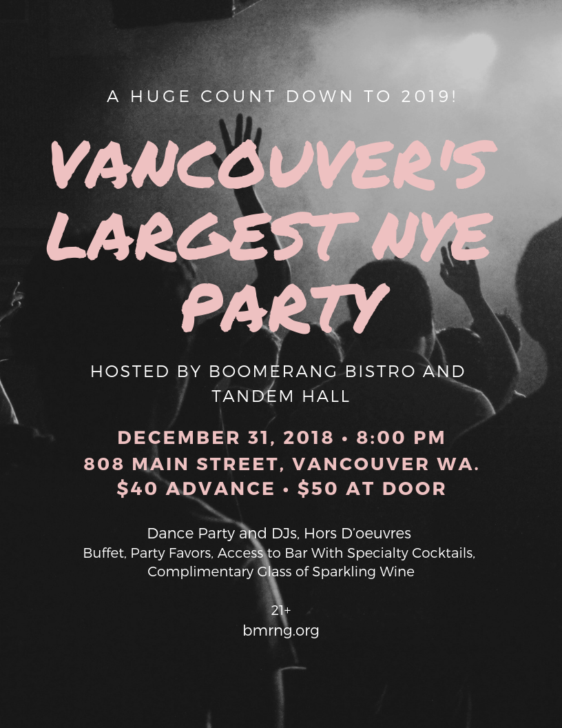 The first big event will be Vancouver’s Largest NYE Party | A Huge Count Down [sic] to 2019!