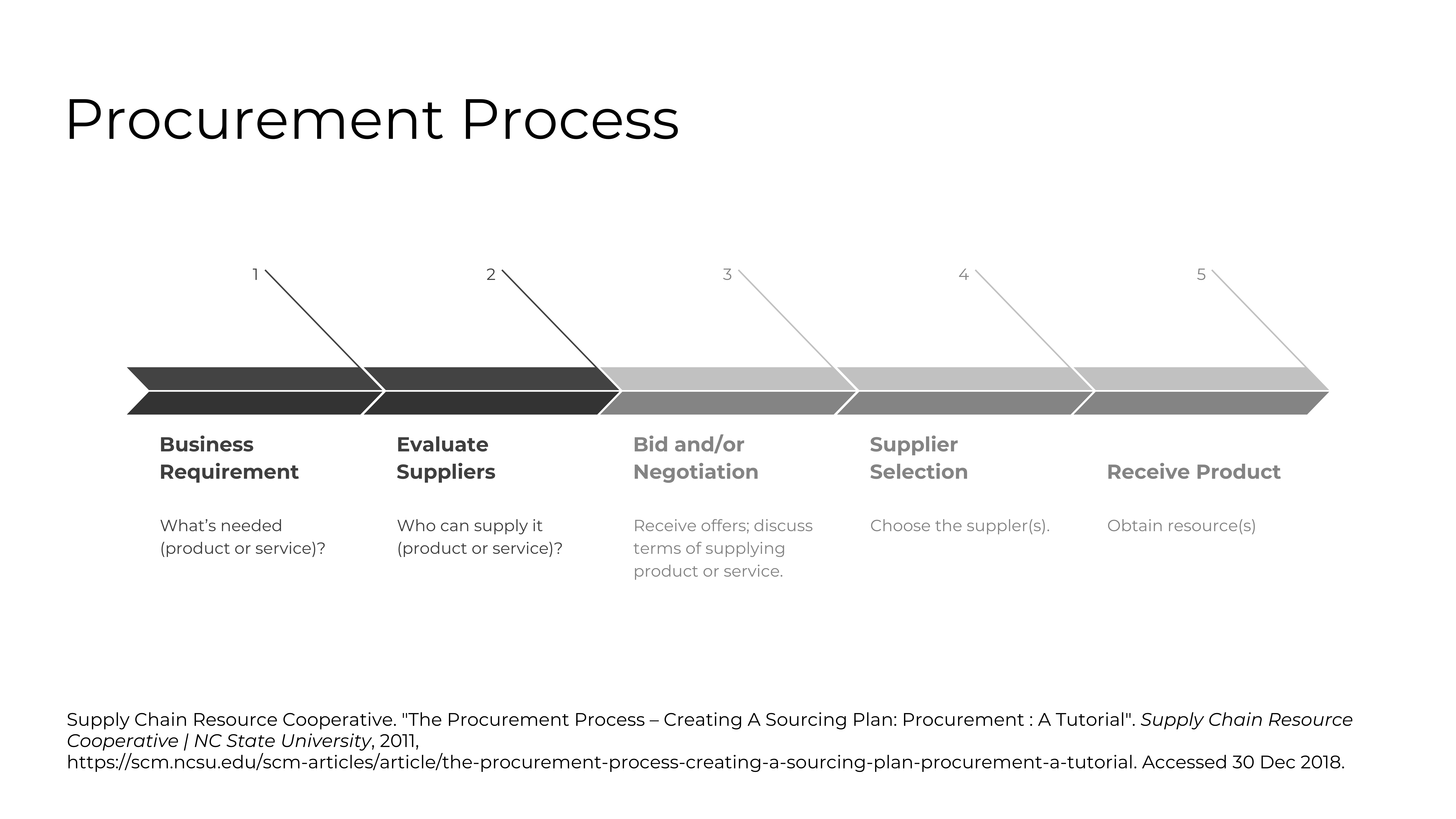 Supply Chain Resource Cooperative. “The Procurement Process – Creating A Sourcing Plan: Procurement : A Tutorial”. Supply Chain Resource Cooperative | NC State University, 2011, https://scm.ncsu.edu/scm-articles/article/the-procurement-process-creating-a-sourcing-plan-procurement-a-tutorial. Accessed 30 Dec 2018.
